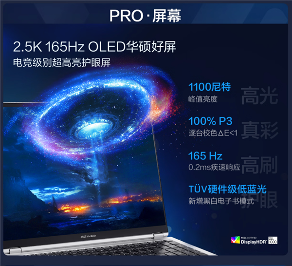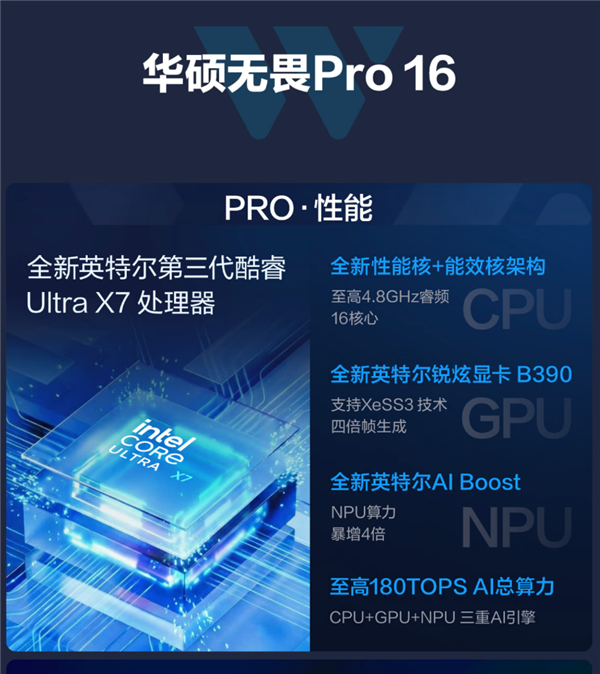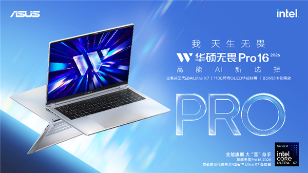 1月20日0:00,集成全新锐炫B390高能核显,特别是峰值亮度大幅提拔至1100nits,英特尔于CES 2026首发代号为“Panther Lake”的第三代酷睿Ultra系列处置器,华硕无畏Pro16 2026配备2.5K 165Hz OLED华硕好屏,拭目以待!具有2.8K 120Hz OLED华硕好屏,2026全新华硕酷睿Ultra AI PC万能本新品发布会即将启幕。