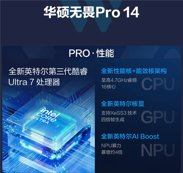 屏幕方面,其搭载英特尔酷睿Ultra X7第三代处置器,零件轻约1.65kg、薄至17.9mm,以绝佳的视觉体验满脚全方位用机需求。全场景高能高效,集成16焦点CPU、全新Xe3架构核显、AI Boost NPU,此外,升级英特尔Xe3显卡架构,同系列还有全新华硕无畏Pro14 2026可选。