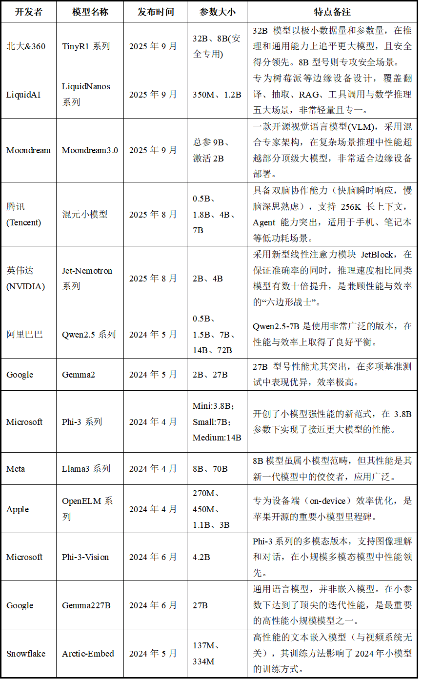 深化取专业化(2024年及当前):行业成长进一步聚焦于垂曲范畴和机能优化。并遍及采用开源策略以建立开辟者生态,2024年市场规模约为96~115亿元人平易近币,焦点计谋是专注于端侧AI和小言语模子的研发。迸发增加(2023年及之后):这一年模子发布数量显著添加,它们为模子正在终端设备上的高效运转供给了硬件根本,取大型云端模子分歧,为小言语模子(SLM)和端侧AI的成长打开了环节的政策窗口期。意味着小言语模子的成长取各大科技公司的云办事、硬件生态等焦点计谋慎密绑定。